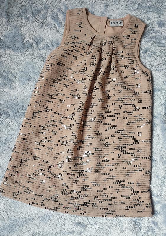 Сукня від Next, дуже красива, з паєтками. Розмір 6 років, 116 см. В ідеальному стані. Довжина - 60 см, ширина під руками - 31 см. Ззаду на гудзиках