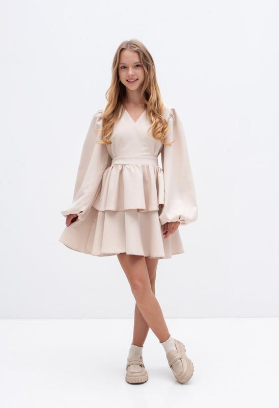 через кнопку купить только полная оплата!!! Сукня на запах Пояс пришит к платью, завязывается сзади. Тканина - костюмна. Цвет - карамель. Замеры: 140 длина - 68см, полуобхват груди - 37см, рукав от плеча - 55см. 146 длина - 72см, полуобхват груди - 39см, рукав от плеча - 57см. 152 длина - 77см, полуобхват груди - 43см, рукав от плеча - 60см. 158 длина - 80см, полуобхват груди - 44см, рукав от плеча - 64см. Мс