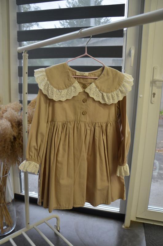 Платье бежевого цвета с рюшей на воротнике,вик 3-4 года