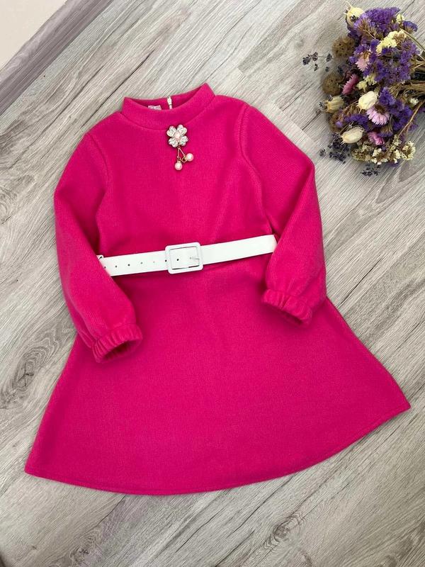 ✅️В наличии ❤️НОВИНКА🍁 Тепленькое и нарядное платье, ткань вязкая - ангора. В комплекте поясок и брошка. В зади есть замочек. Размеры: рост- длина/рукав от плеча/пог/п**********/29 116-64/38/31/30 Размеры: 110- продано 116- 1 шт