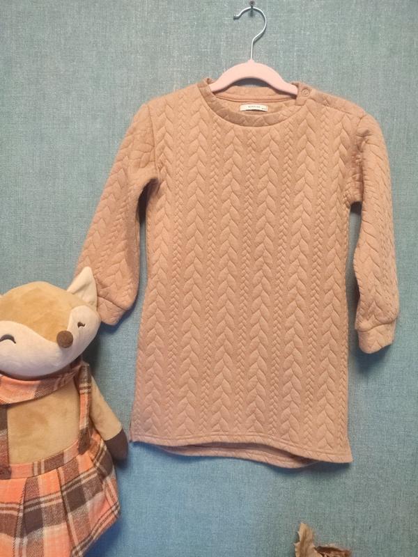 Теплое, красивое платье от польского бренда reserved Платье удобно надевать, сверху застегивается на кнопки. Имеет 2 боковых кармана и маленькие разрезы по бокам. Размер: 110см на 4-5 лет Замеры: расстояние между подмышками -33см, длина рукава от плеча-33.5см, длина платья-58см