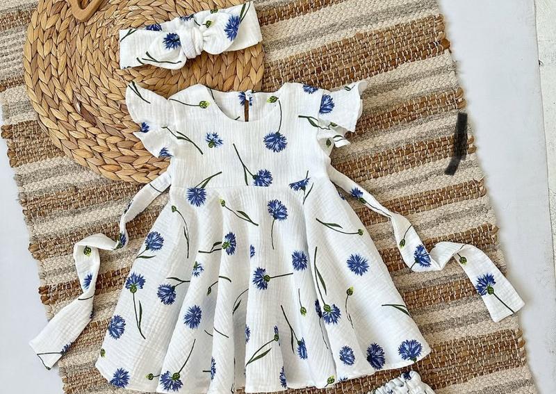 Сукня муслін та солоха , принт волошки 100% бавовна
