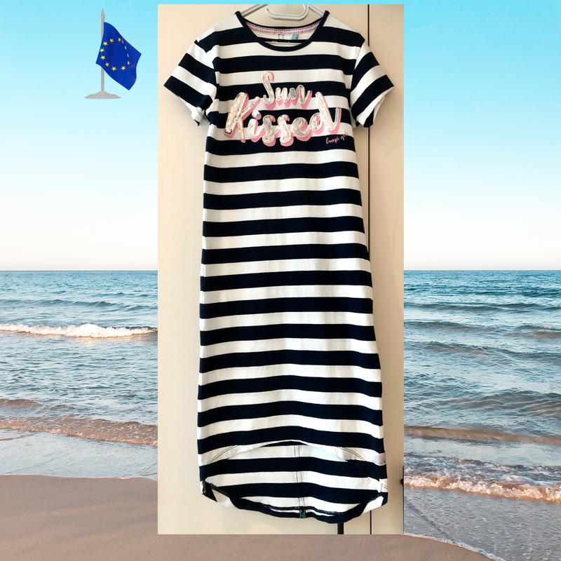 Мила сукня в морському стилі — синьо-біла смужка. Тканина м’яка, еластична, оксамитова на дотик. Одягнена лише кілька разів, стан ідеальний. Усі заміри на фото. Товар знаходиться в Європі, тому на пересилку Новою поштою потрібно 5-7 днів. Оплата за доставку тільки по Україні. Сума замовлення від 1500грн