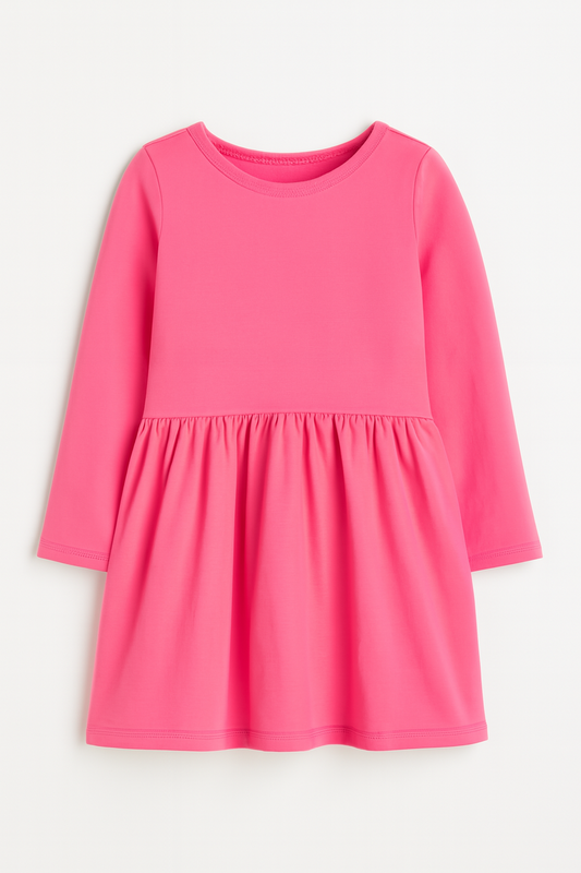 Удобное платье из мягкого хлопкового трикотажа с длинным рукавом, слегка расклешенная юбка. Розового цвета. 100% бавовна. 2Т - 92 см 3Т - 98 см 7 - 131cm 8 - 136cm 10 - 142cm