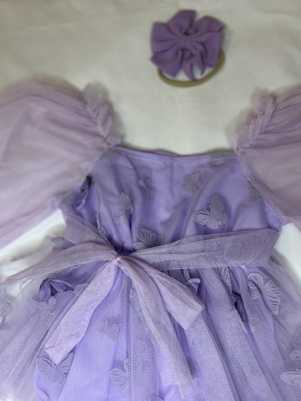 Дуже гарна сукня розмір 12-18 трохи маломірить, Довжина до памперсу 42 см, Одягалась один раз для фото , все в ідеалі. По всим питанням в смс