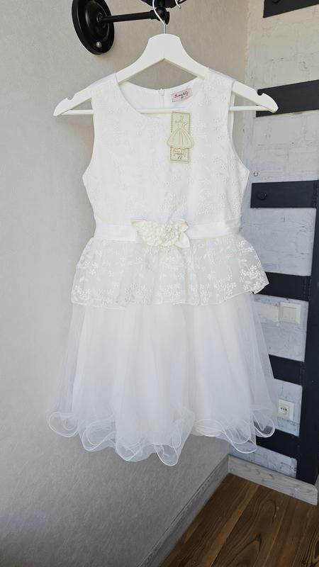 Нарядное белое платье на девочку 8-10роков Сзади на молнии. пог 39 пот 34 длина 73
