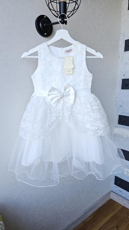 Нарядное белое платье на девочку 5-8 лет Сзади на молнии. пог 35 пот 32 длина 73