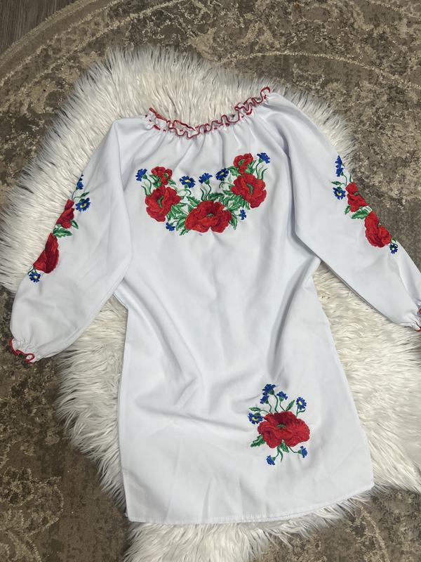 Стан хороший Є пляма від пасти на фото видно Намисто у подарунок Можна нашити на пляму бусинки Довжина 64 Рукав 3/4 довжина 36 По грудях 42 Прямий покрой Н а 5-7 років Дивіться заміри