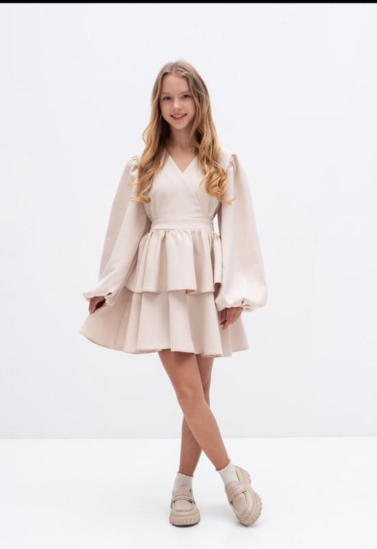 через кнопку купити тільки повна оплата!!! Сукня на запах Пояс пришитий до сукні, зав'язується позаду. Тканина - костюмна. Колір - карамель. Заміри: 140 довжина - 68см, напівобхват грудей - 37см, рукав від плеча - 55см. 146 довжина - 72см, напівобхват грудей - 39см, рукав від плеча - 57см. 152 довжина - 77см, напівобхват грудей - 43см, рукав від плеча - 60см. 158 довжина - 80см, напівобхват грудей - 44см, рукав від плеча - 64см. Мс