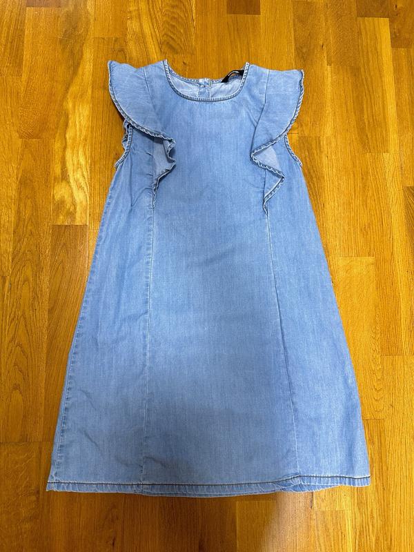 Состояние хорошее. Без дефектов. Легкий деним Простое словно, а за счет рюшек выглядит интересно) Подойдет на "струнку"/стандартную фигуру. Размер и замеры на фото.