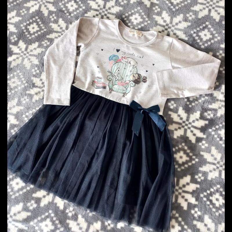 Сукня на дівчинку 4 роки, 104 см., сірий верх з малюнком, синій низ юбки з фатином, в гарному стані без дефектів