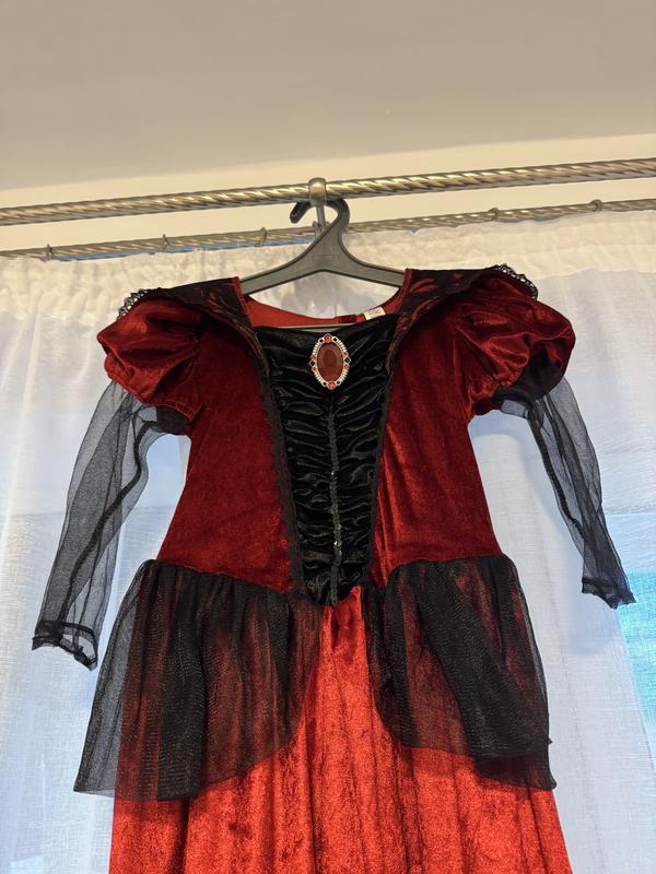 Сукня на свято Хелловін. В чорно червоних тонах. Рукав сіточка. Дуже красивий низ, в чорні троянди. Розмір на бірці 9-10 років.
