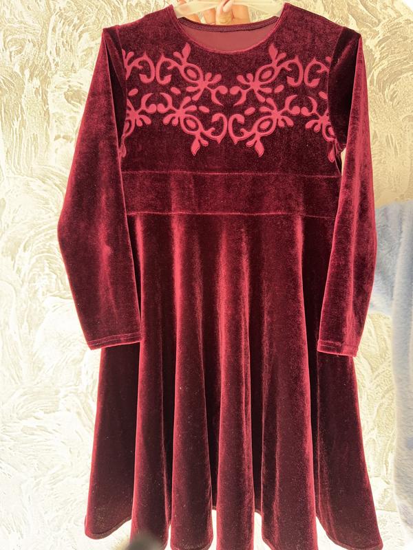 Оксамитове дитяче платтячко для дівчинки Насичений бордовий колір, приємна на дотик тканина та ніжний візерунок зверху. Ідеально підходить для свята, виступу чи фотосесії.