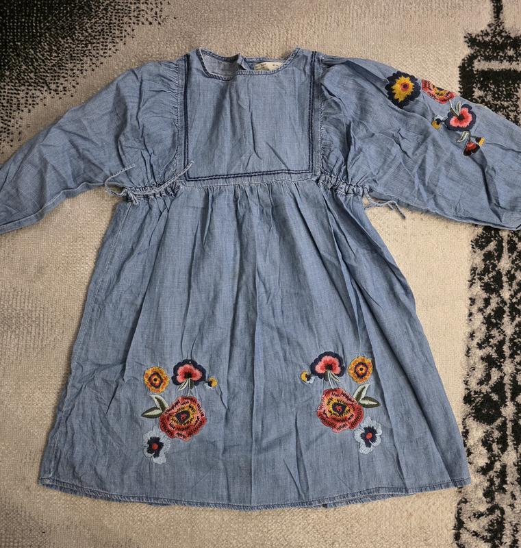 Красивое джинсовое платье от Зара. размер 134. состояние красиво. одлиненная вышивкой.