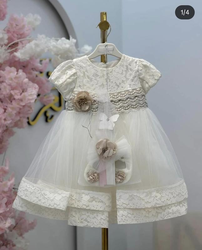Праздничное пышное кружевное платье для девочки от 9 до 12 месяцев в идеальном состоянии. Надевали 1 раз на фотосессию. В комплекте идет обувь, повязка на голову и дополнительный цветочек на шпильке. Более детальные снимки способны сбросить в личные.