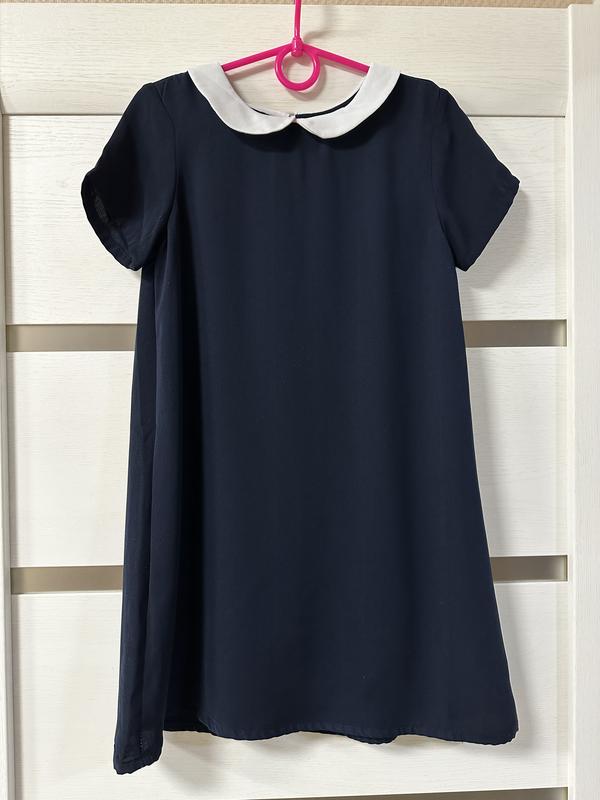 Очень крутое платье! Купили для школы. Простое, лаконичное, удобное. Не пожелаете, как и я ) Состояние отличное! Цвет - синий. Подкладка по всему платью. Размер и замеры на фото.