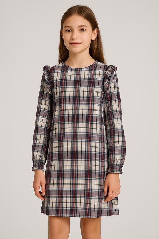 Оригінальна сукня Nell Blue, розмір 12A (на 12 років, зріст 146–152 см). Модель виготовлена з натуральної тканини, має довгі рукави, декоративні рюші на плечах, застібку-блискавку ззаду. Відмінний варіант для школи або урочистих подій. 📐 Заміри: довжина — 74-75 см, ширина під пахвами — 39 см, довжина рукава — 52 см.
