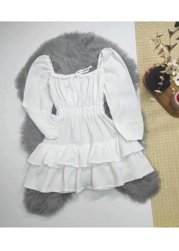 Муслиновое платье белого цвета. Состояние новой вещи, без бирки. Размер 134й. Купила для дочки на выпускной (4 класс). Одетая всего один раз. Нежная на ощупь, приятная к телу