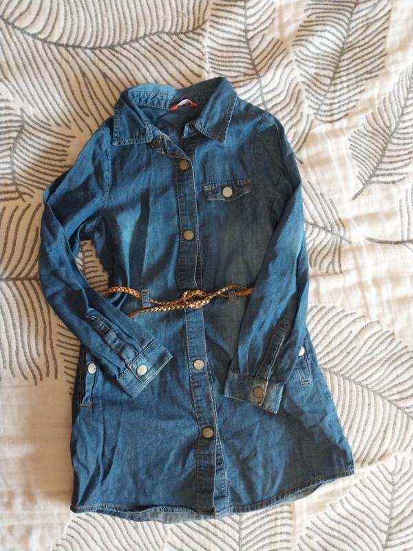 Платье коттон очень нежная джинса . в очень хорошем состоянии. плетёный пояс длина по спинке 58 рукав 43 на рост 116 см