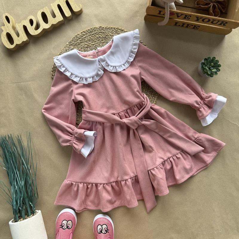 Нежное детское платье с белым воротничком – воплощение элегантности и удобства. Длинный рукав, застегивается на молнию, пояс. Классический дизайн и нежные детали делают образ изящным и праздничным! Размеры: 110 – рукав 39 / длина 57 116 – 40 / 59 122 – 42 / 61 128 – 44 / 65 134 – 46 / 68 140 – 50 / 72