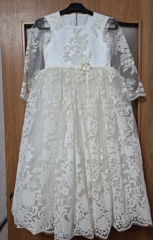 Продам святкову сукню для дівчинки. Довжина 97 см, рукава 40 см, напівобхват грудей 32 см.