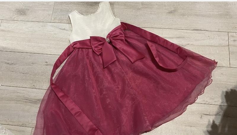 Святкова сукня для дівчинки 4/6років. Рожево-біла, пишна, сзаду бант та спереду із стразами
