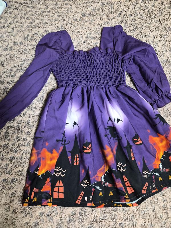 Хорошее платье на праздник Хэллоуин. состояние новой. цвет более насыщенный. Размер указанный 100. подойдет на 98-104.