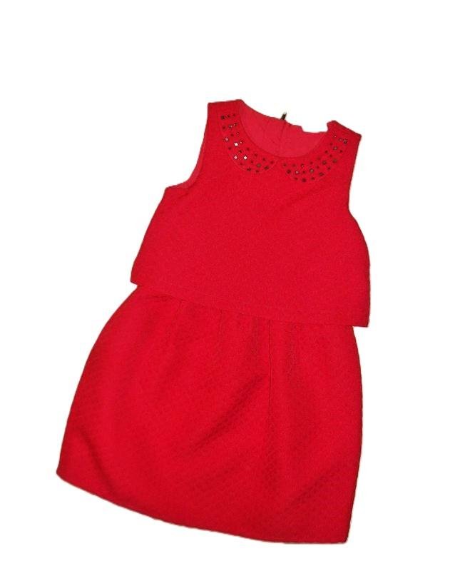 ідеальний стан ближче до нового Маталан 8років зростання не вказано довжина 67 до талії 28 пог 34,5, спинка на довгій блискавці, тканина понте, щільний, м'який фактурний трикотаж