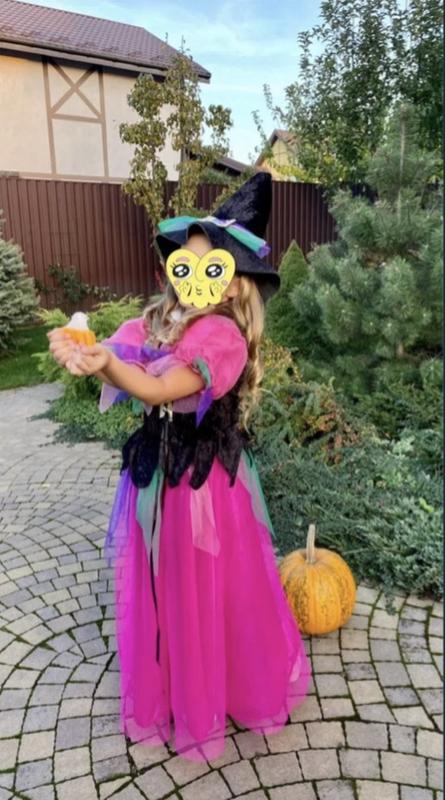 Платье на Хеллоуин, как новое, цвет как на фото, яркое, шляпа так же к нему идёт. Ваш ребёнок будет страшно красив)