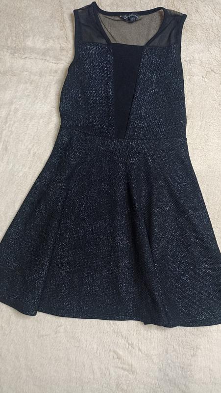 В наявності чорна блискуча сукня з прозорою вставкою. Має ідеальний стан без дефектів, легеньке ідеально підійде для свята, та день народження! Довжина -74, груди-35 ,пояс31.