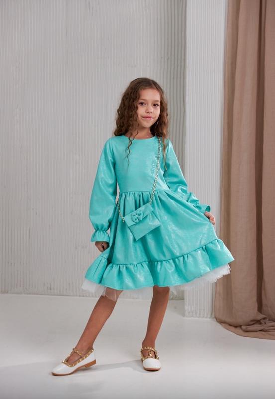через кнопку купить только полная оплата!!! Стильное, невероятное платье для красавиц 🎀🌸🎀 Пышная юбка с фатиновой дорожке 😍 В комплекте сумочка 👛 Сзади застежка пуговица 👌🏻В рукавичках резиночка ☺️ Ткань: костюмка с напылением 💓 Производитель: Украина 🇺🇦 р.122-1шт ЗАМІРИ +/-1-2см!!! ▪р.122- длина платья от плеча 71см/ рукав от плечевого шва 45см / ПОГ 32см / длина юбки 44см