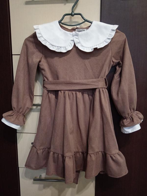 Невероятное платье. Украшена белым воротничком.Рукава тоже украшены белым цветом. Есть поясок. Сзади застегивается на молнию.