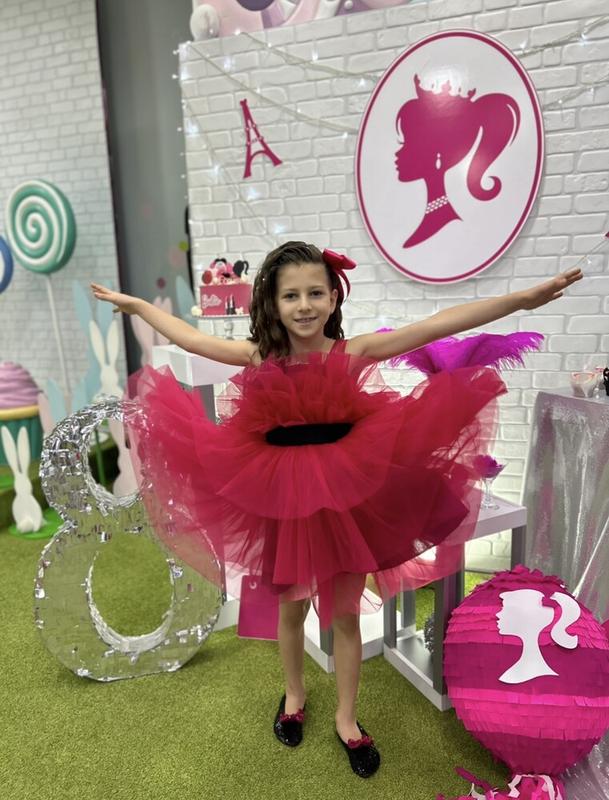 Крутое платье в стиле Барби. Идеально на выпуск младшей школы- нарядная, яркая, качественная, НЕ длинная- девочка выглядит девочкой, а не женщиной... Платье сшито по заказу украинским производителем, специализирующимся на создании нарядных платьев. Замеры дам по запросу. Одета один раз (!) На фото ребенку 8 лет, рост 132 см( есть достаточный запас) Около 7-10 лет. Блестящие чешки входят в стоимость. Состояние без дефектов. Стоимость при покупке- 3000 грн