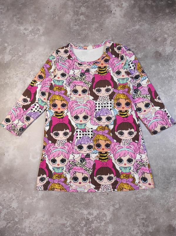 👗 Дитяче плаття з принтом LOL Яскраве та стильне платтячко для дівчинки з улюбленими ляльками LOL Surprise 💕 М’яка, зручний фасон — ідеально для садочка, прогулянок чи свята. Рукав ¾ Стан: дуже гарний, без плям і дефектів, носилося обережно. Підійде приблизно на 4–5 років (орієнтуйтеся за мірками).
