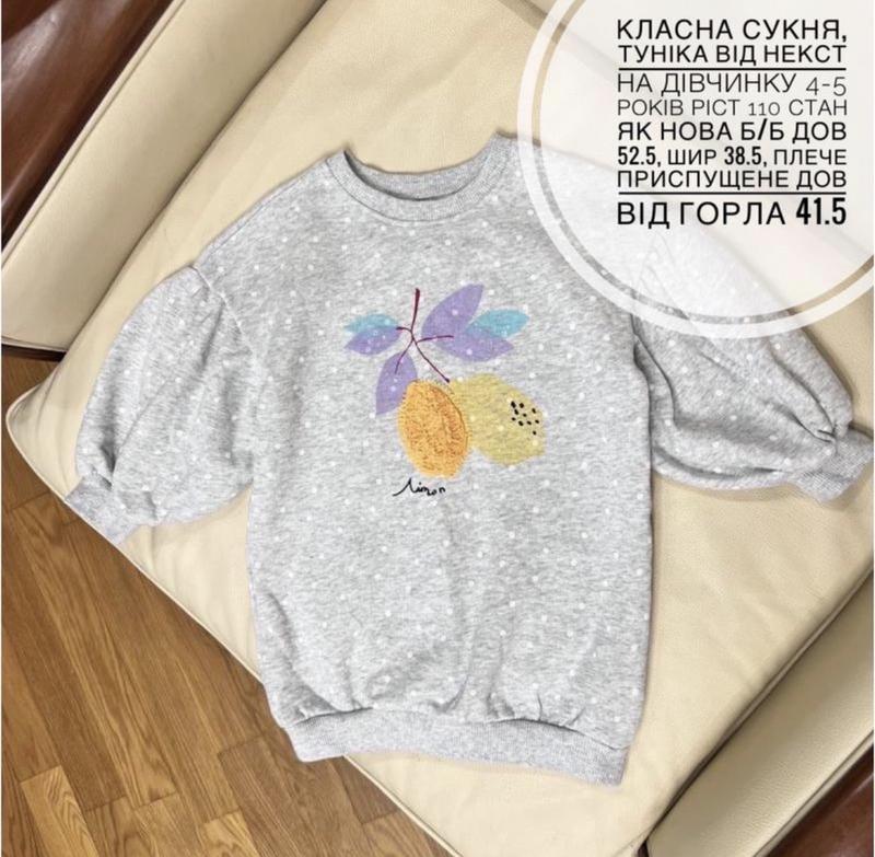 Класна сукня, туніка від некст на дівчинку 4-5 років ріст 110 стан як нова б/б дов 52.5, шир 38.5, плече приспущене дов від горла 41.5 В наявності 2 шт