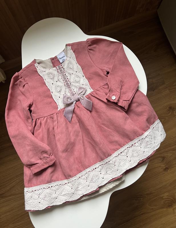 Дуже гарна сукня, вінтажна Розмір вказано 92, але буде і на 86 Цупка тканина, щось сходе на бархат Має нюанс, позаду знизу маленькі дирочки ніби зацепки, в носці не сильно помітні, інших дефектів немає, стан ідеальний