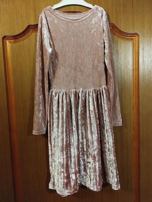 Платье велюровое 134 размер. Стан очень красивый, сзади есть малая зашитая дырочка (на ф 3 ).