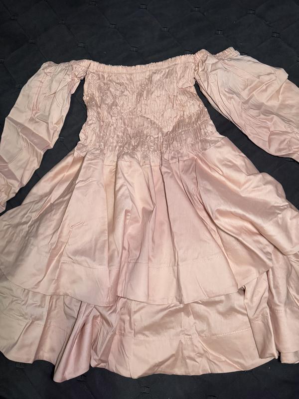 Нова сукня персиково-бежевого кольору (так як на першому фото). Розмір S-M. З спущеними рукавами. Пишна спідниця. Довжина сукні 70см.