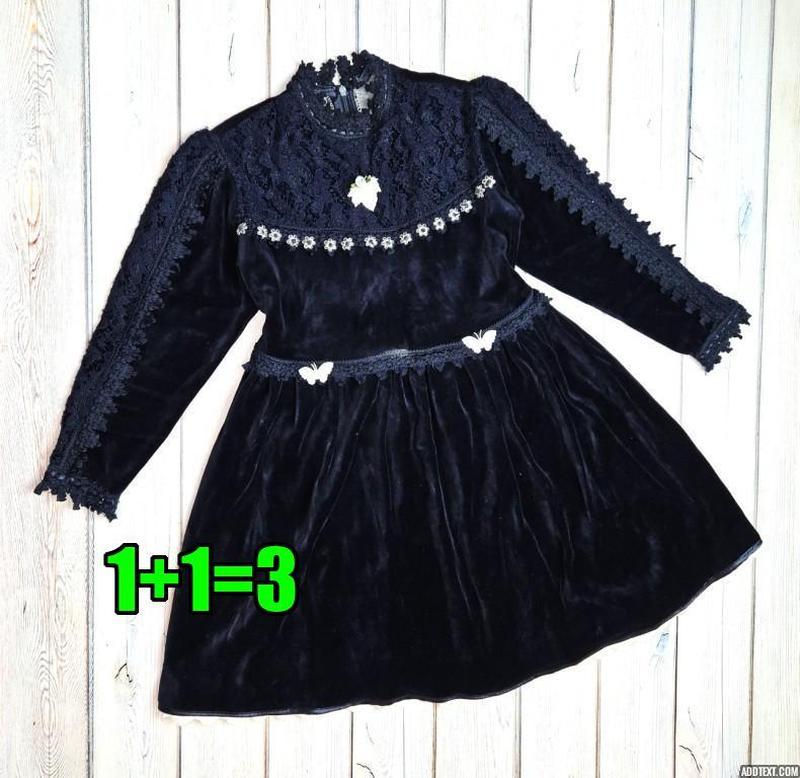 🤩1+1=3 шикарное темно-синее велюровое платье на девочку 6-7 лет