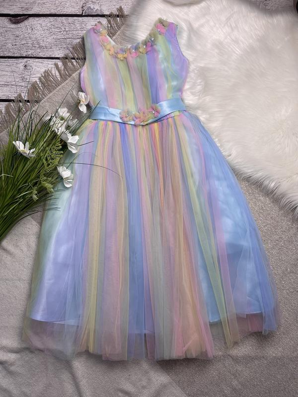 Нереально красива сукня, розмір не сказаний, десь на 11-13 років( міряйтесь по замірам), стан нової Д 97, пог 36, пояс 32, заду на замку