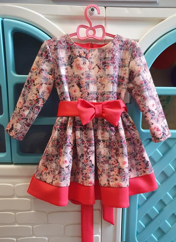 Праздничное детское платье в цветочный принт под пояс. Демисезон Размер 92 Длина 50см Под проймами 30см Пояс 27.5см Рукав 30.5см Застежка молния