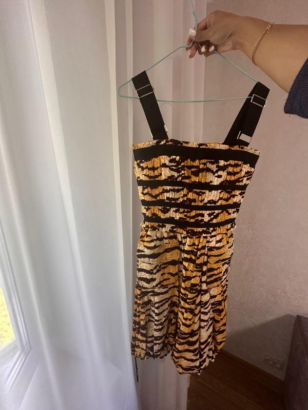 Коктейльна сукня без рукавів з принтом тигрових смуг DOLCE & GABBANA зі збірками та плісируванням Ціна договірна