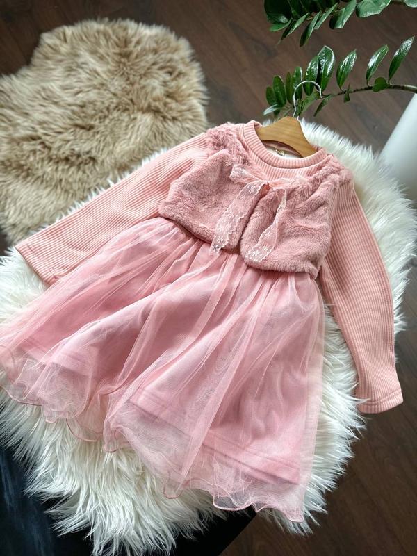 🎯 У НАЯВНОСТІ 📝 Ніжна тепла сукня для дівчаток 🖤 Верх - трикотаж 🖤 Підкладка - плюш 🖤 Фатин два шари 🖤 Хутряна жилетка пришита побокам 🖤 Тканина щільна Якість 💣 Розмір 90 (2 шт) 100(1 шт) 110(2 шт) 120(1 шт) 130(2 шт) 140(2 шт) Виміри 90-Довжина з фатином 50 см Рукав від плеча 30 см пояс 28*2 см 100-Довжина з фатином 52 см Рукав від плеча 33 см пояс 29*2 см 110-Довжина з фатином 55 см Рукав від плеча 35 см пояс 30*2 см 120-Довжина з фатином 61 см Рукав від плеча 37 см пояс 32*2 см 130-Довжина з фатином 62 см Рукав від плеча 40 см пояс 34*2 см 140-Довжина з фатином 63 см Рукав від плеча 42 см пояс 35*2 см Виміри зроблені однієї ростовки Допустима похибка +-1-2 см