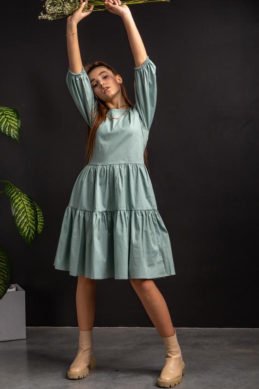 Модное, красивое, яркое платье для девочки подростка. Данная модель привлечет даже самых заядлых любителей брюк и джинсов. Платье на спинке застегивается на молнию, рукав 3/4, ткань приятная к телу и очень практичная, хорошо пропускает воздух. Размер: 146-урост Материал: Коттон-твил 146-рост: длина-85см, рукав от горловины-44см, полуобхват груди-38см