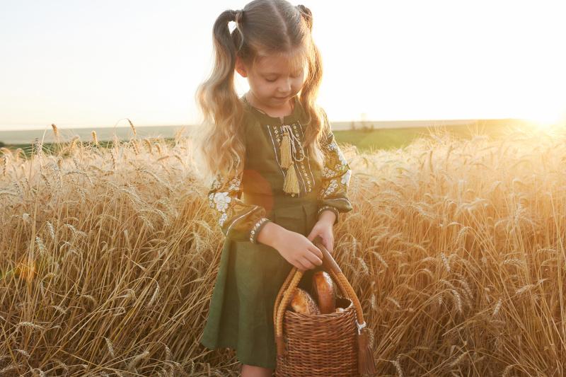 Детское платье из натурального льна цвета хаки - является при этом практичным ежедневным и праздничной одеждой для Вашей малышки. Узор размещен на рукавах и на передней части изделия. Бантик-завязка отлично корректирует форму и добавляет оригинальности. Ткань является приятной к телу, поэтому такое платье Ваша девочка будет одевать с радостью!