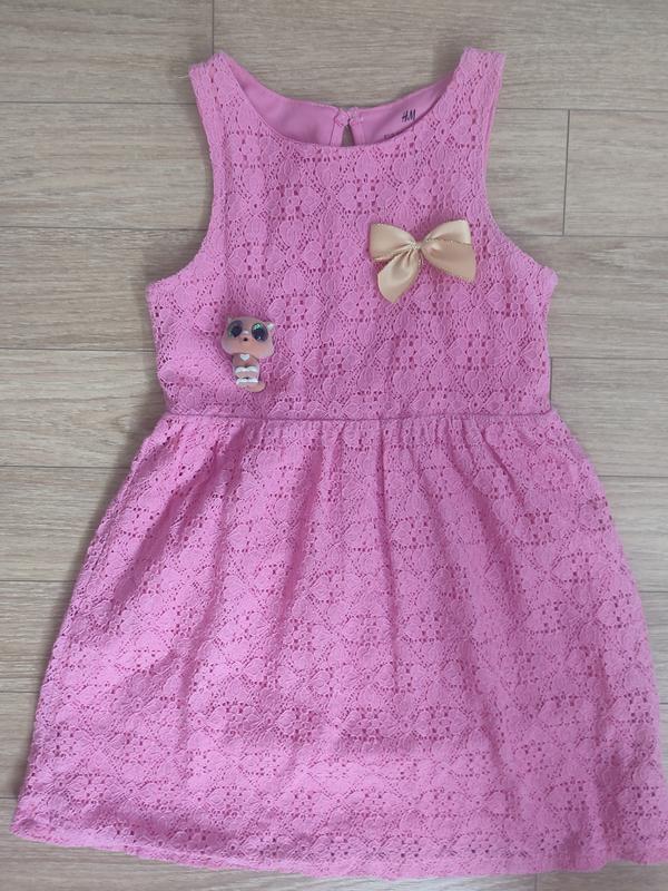 Отличное розовое платье на девочку на 5-6 лет с сетевого. Платье было излюблено, потому что удобное и само у нее девочка выглядит отлично как Принцесса. Платье закладываетесь из 2х слоев. Размер 110/116. Цвет: розовая. Материал :72% бабовна 28% полиамид Стан идеальной, без нюансов. Застежка пуговица на спине. Замеры: длина - 61 см, из них вверх 25 см и юбка 36 см в грудях - 30 см (полу оберт) плечо - 2,5 см полкруг по талии 27 см