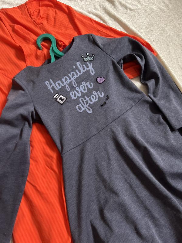 Платье на девочку 8 лет 128 см с принтом патчи нашивки теплое школьное