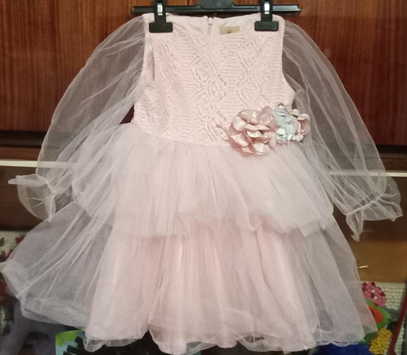 праздничное платье на девочку, размер 116, надевается два раза, без дефектов, цветочки на шпильках, можно снять, замочек рабочий.