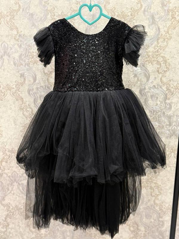Праздничное платье Одетая 1 раз в Новогодний праздник Состояние 5/5, новый Размер 122 см Цвет черный Длина всего платья 90 см Спереди длина 60 см Сзади регулируется ширина бантом Имеет застежку