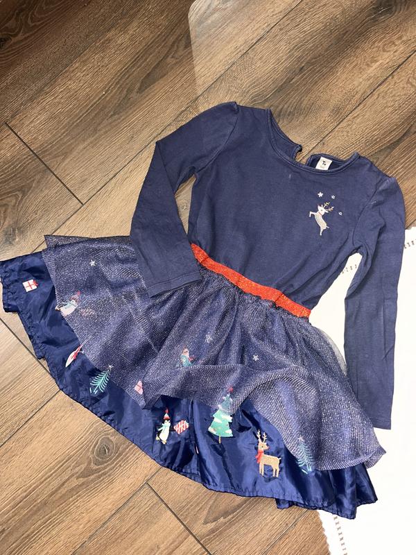 Синя фіолетова сукня довгий рукав для дівчинки 5 6 років 110 116 см новорічна різдвяна з в...